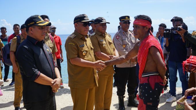 A.Md dan Perwakilan Polres MBD dengan menggunakan Speed tiba di Desa Mahaleta, Bupati Maluku Barat Daya,
