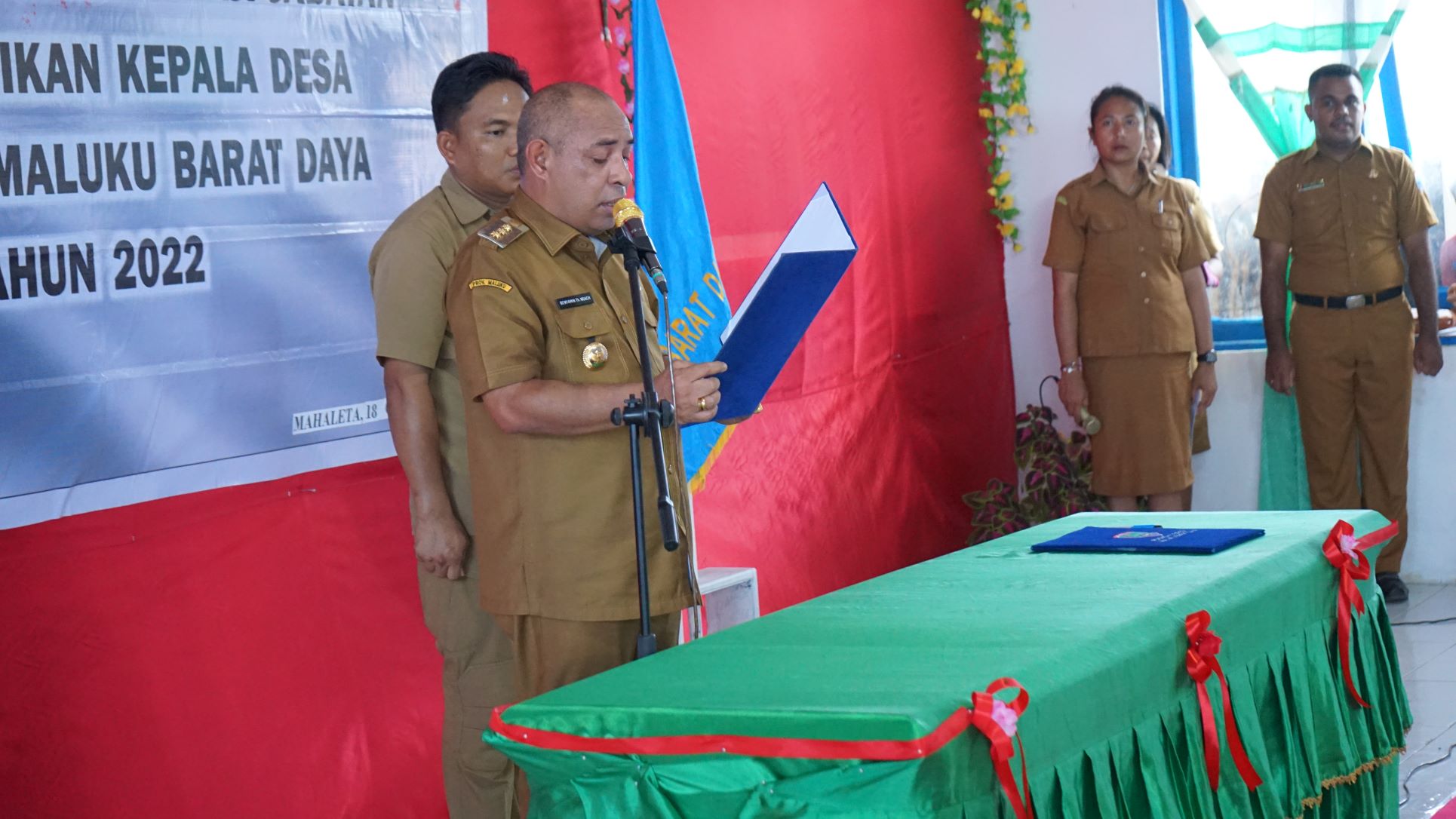 Benyamin Th. Noach, S.T mengambil sumpah dan melantik Kepala Desa Mahaleta, Kepala